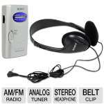 3-In-One Digital AM/FM/Weather Stereo Tuner/ 20 Station Preset Memory/ Digital Clock And Battery Indicator/ Stereo Headphone And Belt Clip Included/ Black Finish.