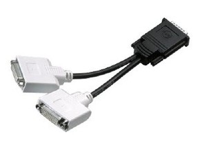 This Y-cable converts one 59-pin LFH connector to two 24-pin DVI ports. It is made for use with the Quardo series..