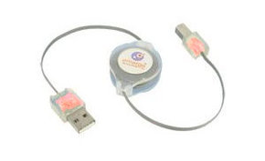 EMERGE Technologies Retractable USB 2.0 A to B Cable with Red LED Illuminated Indicator Lights.