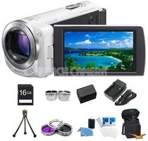Sony HDR-CX260V HD Camcorder 16GB 30x Optical Zoom with Geotagging (White) Bundle 1920x1080 Full HD 60p Recording w 8.9MP still image captureThe Sony HDR-CX260V offers 1920 x 1080 high defin.