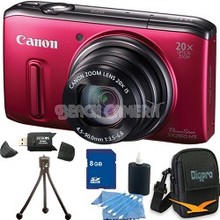 Canon PowerShot SX260 HS Red Digital Camera 8GB Bundle The fact that the PowerShot SX260 HS digital camera is an ultra-slim camera with a powerful 20x Optical Zoom Optical Image Stabilization an.
