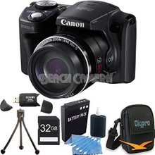 Canon Powershot SX500 IS 16MP 30x Zoom Black Digital Camera 32GB Kit The PowerShot SX500 IS gives you all the power of super zoom in a camera that?s sized to go everywhere! The extremely powerful.