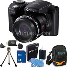 Canon Powershot SX500 IS 16MP 30x Zoom Black Digital Camera 8GB Kit The PowerShot SX500 IS gives you all the power of super zoom in a camera that?s sized to go everywhere! The extremely powerful .