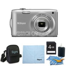 Nikon COOLPIX S3300 16MP 6x Opt Zoom 2.7 LCD 4GB Silver Bundle Smart slim super easy. Take better pictures and movies with a 6x zoom and high-resolution 16 MP sensor. For moments that matterYo.