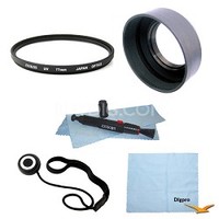 Special Essential 77mm UV Filter Accessory Bundle Includes: 77mm UV Protective Filter 77mm Rubber Lens Hood LCD Lens Cleaning Pen And MicroFiber Cloth Microfiber Cleaning Cloth Lens Cap Keeper.