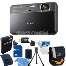 Sony Cyber-shot DSC-T110 Black Touchscreen Digital Camera 16GB Bundle Includes Camera 16GB Memory Card Battery Camera Carrying Case Memory Card Reader Mini Tripod Screen Protectors and Cle.