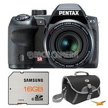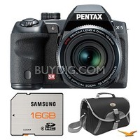 Pentax Black X-5 16MP 26x Zoom Megazoom Digital Camera 16GB Card and Case Bundle Includes: X-5 16MP 26x Optical Zoom Megazoom Digital Camera Kit (Black) SD High Speed 16GB Waterproof and Shockpr.