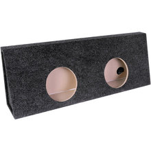 10-Inch Dual Vented Enclosure/ Shared Chambers/ MDF Construction/ Completely Carpeted Enclosure/ 1-Inch Speaker Baffles/ Black Finish.