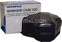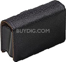 Olympus Textured Leather Case (Black) Slim classic leather saddle bag design that uses a magnetic closure clasp. Features a leather wrist strap belt loop interior xD media slot and credit card\.