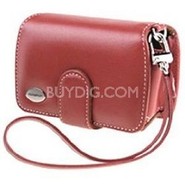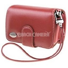 Olympus Premium Slim Leather Case (Red) Slim classic leather saddle bag design that uses a magnetic closure clasp. Features a leather wrist strap belt clip two interior xD media slots and credi.