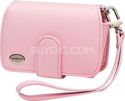 Olympus Premium Slim Leather Case (Pink) Slim classic leather saddle bag design that uses a magnetic closure clasp. Features a leather wrist strap belt clip two interior xD media slots and cred.