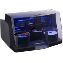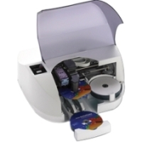 Automatically prints CDs and DVDS / Prints up to 100 discs per job / Integrated high-speed 4800 dpi inkjet printing / Disc Cover design software.