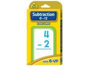 Subtraction 0-12 Flash Cards contain 91 problems ranging from 0-0 to 12-12. At the top of each card is a small-print answer to the problem on the reverse side. Cards with numbers and subtraction .