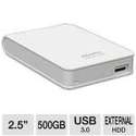 ADATA Dash Drive 500GB External HDD in White.