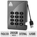 250GB PADLOCK SECURE USB 2.0 - 5400 RPM 8MB 128BIT AES A25PL128250.