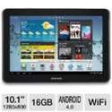 10.1 (1280x800) Widescreen WSVGA TFT Display/ 1GHz Dual-Core Processor/ Android 4.0 Ice Cream Sandwich/ WiFi 802.11 b/g/n WiFi Direct/ 3 Megapixel Rear-Facing VGA Front-Facing Cameras/ GPS/ B.