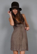 Sleeveless Front Tuck Dress in Bronze/Gold Lurex [ on sale ].